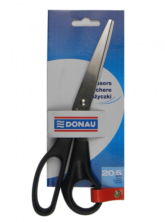 Nagy rozsdamentes acél olló irodába, iskolába, otthonra és műhelybe. Az olló teljes hossza 20,5 cm, a vágópenge hossza 8 cm.