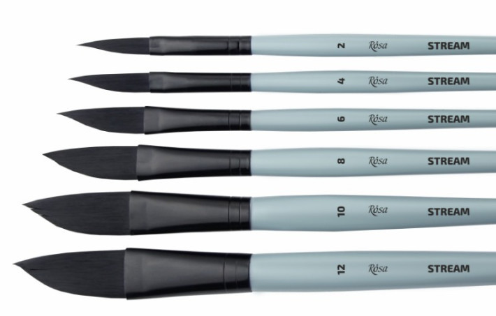 A Rósa STREAM Dagger puha, rugalmas szintetikus szálból készült. Akvarell ajánljuk, komplex formájú ecsetvonások és természetes formák festésére készült ecset. A szintetikus szál könnyen megtartja majd leadja a vizet és a festéket, és egyenletesen felhordja azt a teljes hosszában. Ez egy nem szabványos alakú, multifunkcionális ecset, amely nagyban megkönnyíti az ecsetvonások, grafikai munkák, virágok, fűszálak, hajszálak, szirmok, levelek, hullámok festését. Az éles hegynek köszönhetően kényelmes a finom vonalak felvitele, a speciális kard alakú ecset pedig megkönnyíti azok vastagságának és alakjának változtatását.
